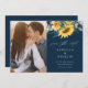 Eine rustikale Herbstblume Foto Hochzeit speichern das Datum mit Aquarellsonnenblume und Eukalyptusbouquet. Klicken Sie auf die Schaltfläche Bearbeiten, um dieses Design anzupassen.