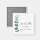 Eukalyptus Wedding Save the Date Magnet. Lass deinen Freunden und Bekannten, wann dein besonderer Tag mit diesem einzigartigen und eleganten Eukalyptus Wedding Save The Date Magnet ist. Einfach mit Ihren Namen und Datum anpassbar. Weil wir unsere eigenen Kunstwerke erstellen, werden Sie dieses exakte Bild von anderen Designern nicht finden. Original Wasserfarbe © Michele Davies.