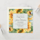 Schöne, elegante gelbe Sonnenblumen und Eukalyptus und andere Pflanzen auf einer botanischen cremefarbenen quadratischen Hochzeitseinladung. Kontaktieren Sie uns für Hilfe bei der Anpassung oder der Anpassung von Produkten. Die Namen der Braut und des Bräutigams sind in einem eleganten Skript-Schriftart.