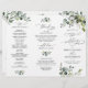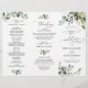 Dieses maßgeschneiderte Zeremony-Programm wurde für die Koordination mit unserer Hochzeitskollektion Boho Greenery konzipiert. Es verfügt über Eukalyptuszweige in Aquarellfarbe mit einem klassischen Serif-Schriftart und eleganten Kalligrafien. Matching-Elemente verfügbar.