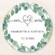 Eukalyptus white mr mrs heart script runder pappuntersetzer