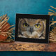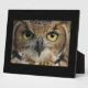 Foto-Plakette mit einem Akro-Foto einer Eule Augen. Drücken Sie die Schaltfläche "Anpassen" oben, um das Objekt zu personalisieren, indem Sie einen anderen Stil wählen, die Farbe und Größe ändern oder Ihren eigenen Text und Bilder hinzufügen.