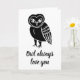 Diese süße Karte zeigt eine Eule-Abbildung mit den Wörtern "Owl Always Liebe you" auf der Vorderseite. Das Innere lautet "Ich Liebe Sie und schätzen Sie mehr, als Sie wissen", die entfernt oder angepasst werden können.