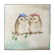 Eule mit bunten Schals auf einem Baumzweig. Auf dieser lustigen Keramik Foto Tile.