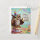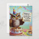Eule mit Geburtshühnchen stehend auf Kuchen Postkarte