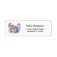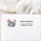 Adressetiketten mit einem Eulenbild in der Liebe, das auf einem Baumzweig zusammensitzt. Umgeben von hübschen blauen, grünen und rosa Blumen.