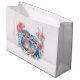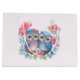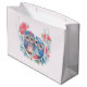 Eine Geschenktasche mit einem Bild eines Eulenpaares in der Liebe, das auf einem Zweig sitzt. Umgeben von hübschen blauen, grünen und rosa Blumen.