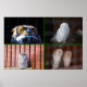 Bild von vier Eule in den USA gefunden, die große Horned Owl, Schneeauwl, Barred Owl und die Barn Owl.