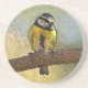 Ein Entwurf eines blauen, gelben, Schwarzweiss-bluetit auf einer Niederlassung mit einem blauen und gelben Pastellhintergrund.