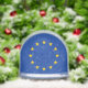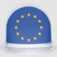 European Union flag snow globe with custom photo and text. Personalized Christmas gift idea for the Holidays. Upload your own image on the back or front. EU flag design with yellow stars. Includes transparent overlay for Holiday greeting. Unique family and bulk business gifts.