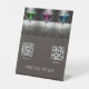 Das stilvolle, virtuelle Tipp-Tischschild für Hochzeitsfeiern und Barkeeper bietet ein Foto an farbenfrohen Martini-Gläsern mit individualisierbarem Text und QR-Codes auf grauem Hintergrund.