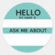 "Hallo, mein Name ist" schreiben Sie auf Namensschild mit einem zweiten Platz für "Frag mir". Eventgast kann in ihrem Namen schreiben und etwas über sich selbst für einen Gesprächsstarter schreiben. Der aquamarine Hintergrund kann in jede gewünschte Farbe geändert werden. Ideal für Wiedersehen, Netzwerkveranstaltungen, Partys.