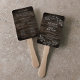 Ces ventilateurs de programme de mariage en bois aux branches courbées sont parfaits pour un mariage moderne. Le design rustique chic présente la silhouette de deux branches fleuries disposées pour composer une couronne feutrée rustique sur un arrière - plan en bois. Indiquez le nom de la mariée et du marié, la date et le lieu du mariage, le message de remerciement, l'ordre de service et la fête de la mariée. Commandez vos programmes assemblés ou non assemblés.