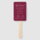 Ce ventilateur à main du programme de mariage est doté d'élégantes calligraphies blanches, dressées contre un riche arrière - plan bordeaux, alliant style intemporel et fonctionnalité. Personnalisez le ventilateur avec vos noms, la date et l'emplacement du mariage, et un message de remerciement sincère en caractères gras et blancs. L'envers présente les détails de la cérémonie de mariage et les noms de votre fête de mariage, assurant une présentation complète et organisée. Conçu avec une esthétique moderne, simple et élégante, ce ventilateur est parfait pour les mariages formels et décontractés en toute saison. Gardez vos invités à l'aise tout en ajoutant une touche sophistiquée à votre célébration mariage.