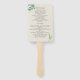 Élégant et rustique éventail de mariage recto-verso avec feuillage vert aquarelle et accents en or faux. Liste les détails de votre cérémonie et cortège sur un design d'éventail pratique—parfait pour les mariages en plein air, de jardin ou d'été.