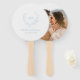 Ventilateur de main de mariage élégant avec un design propre et intemporel avec votre monogramme à l'intérieur d'une crête de couronne avec vos noms et votre date de mariage. Le dos a votre photo préférée.