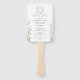 The front displays your ceremony details beneath a coordinating floral monogram crest, while the back features the full wedding party lineup framed by matching blooms for a beautifully cohesive presentation. Designed as a handheld fan with a wooden handle, it’s perfect for outdoor ceremonies, summer weddings, garden venues, and warm-weather celebrations.