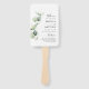 Ventilateur de main du programme de mariage moderne que vous pouvez facilement customiser. Ajoutez les noms de la mariée et du marié, la date et le lieu, un message de remerciement, l'ordre de service et la fête de mariage. Commandez vos programmes assemblés ou non assemblés. CONSEIL : Conçu pour correspondre à notre collection minimaliste de Mariages Eucalyptus vertes.
