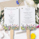Moderne, joli et bohème, ce ventilateur de programme de mariage présente des fleurs sauvages d'été délicats aux couleurs vives avec des papillons, des abeilles bourdonnantes et des coccinelles. Vous pouvez customiser tous les détails du texte et du placement graphique à vos besoins spécifiques.