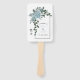 Fleurs aquarelles bleues poussiéreuses, arche et monogramme printemps mariage programme éventail. Cette belle conception de mariage comporte un cadre en arche avec des fleurs de cactus bleues poussiéreuses et des feuilles dans le coin gauche et votre monogramme. Les noms sont en typographie script.