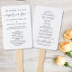 Élégant programme de cérémonie de mariage fan de main mettant en vedette "heureux toujours après" et "amour + merci" dans un script chic avec des swashes et simple typographie moderne. Le recto dresse la liste de vos cérémonies et le verso dresse la liste de vos célébrants, de vos parents et de votre fête de mariage ainsi qu'un message de remerciement.