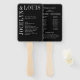 Ventilateur à main du programme de mariage moderne avec un design noir minimaliste avec vos noms dans une grande police le long du côté gauche et du dessus. Cette conception est assez simple pour un mariage officiel tout en faisant une déclaration audacieuse.