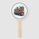 This paddle fan is shown in a festive Mardi Gras print.