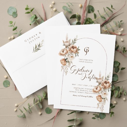 Éventail Pampas Floral Pâtes Rustiques Programmes de mariag