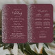 Cet élégant ventilateur moderne de programme de mariage dispose d'un arrière - plan bordeaux foncé bordé d'une fausse parties scintillant argentée. Le texte apparaît dans l'élégante écriture gris argenté et les polices de cuivre.