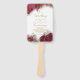 Un arrière - plan abstrait qui évoque le marbre dans les tons bordeaux, veiné d'or brillant, est la toile de fond de l'élégant texte de script et de la conception moderne dans les pièces de cette belle suite mariage. Les fans de main mariage montrés ici présentent le programme de cérémonie ci-dessus plus votre programme de cérémonie et un modèle pour ajouter le nom de la mariée et du marié et la date du mariage. Reverse a les détails de votre mariage et un bref message de remerciement. Recherchez ID644 pour voir toutes les pièces de coordination de cet ensemble.