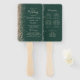 Cet élégant ventilateur moderne de programme de mariage dispose d'un arrière - plan vert émeraude foncé bordé de faux parties scintillant pêche. Le texte apparaît dans l'élégante écriture de pêche pâle et les polices de cuivre.