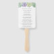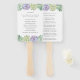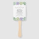 Éventails de mariage botaniques avec une bordure supérieure et inférieure constituée de plantes succulentes à l'aquarelle verte et violette sur le devant et une bordure supérieure au dos. Vos détails sont dans une police de caractères gris doux. Ajoutez vos événements de cérémonie à l'avant et votre cortège de mariage et votre message de remerciement facultatif au dos. Ces éventails aideront à garder vos invités au frais lors d'un mariage en plein air et leur fourniront l'ordre du service. Ceux-ci font également un excellent souvenir et sont parfaits pour un mariage dans le désert au printemps ou en été.