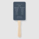Ventilateur à main du programme de mariage de monogramme bleu de la marine classique minimal.