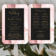 Cet élégant ventilateur moderne de programme de mariage dispose d'un arrière - plan rose pâle, paré d'une parties scintillant en faux or. Le texte apparaît dans une écriture manuscrite élégante de couleur or et des polices de cuivre sur un rectangle non noir.