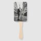 Ventilateur à main du programme de mariage moderne avec un design simple mais élégant avec les détails de votre événement dans un agencement minimal sur votre photo préférée.
