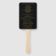 Un éventail élégant noir et or minimaliste tout-en-un avec les détails de votre jour de mariage dans une typographie classique et chic. Conçu par Thisisnotme©