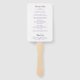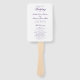 Programme de mariage de style classique Ventilateur à main avec des mots d'accent dans une élégante typographie de calligraphie. Tout le texte est violet royal sur un arrière - plan blanc et peut être changé en n'importe quelle couleur que vous désirez en cliquant sur le bouton "personnaliser". Ces éventails de mariage sont parfaits pour un mariage formel.