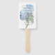 Programme de mariage d'hydrangée bleue sur bâtons. Les programmes de ventilateur portatifs ont de belles fleurs bleues réalistes des deux côtés. L'information du programme est en caractères imprimés et en caractères de script modernes en noir. Un panneau blanc transparent clair tient le texte sur une grande tige de fleur d'hydrangée bleue avec des feuilles verts. Ce type de programme est parfait pour toute cérémonie en plein air, comme un mariage jardin. Le ventilateur fait double fonction car il est informatif et peut être utilisé pour rester cool et garder les bugs loin!