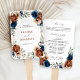 Elégant bleu marine, Terracotta, Orange terroir fleuri ventilateur à thème mariage avec élégant bouquet de bleu marine, Terracotta couleur rose pivoines et vert eucalyptus feuilles. Veuillez me contacter pour toute aide sur la personnalisation ou si vous avez besoin d'un autre produit avec ce design.