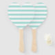 Éventail Turquoise clair et blanc Large Horizontal rayé