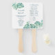 Cet élégant ventilateur de programme de mariage botanique présente mes feuilles de palmiers tropicaux peints à la main d'origine. La verdure se décline dans les tons bleu vert sur un arrière - plan blanc immaculé. Les noms des mariées et mariées et la chronologie du programme de mariage sont définis en écriture manuscrite et sans serif typographie. Ce design double face est un choix de plage pour les mariages côtiers, d'été, de destination et de Floride. Conçu par Victoria d'Invitations VG. Pour en savoir plus, visitez www.zazzle.com/vginvites