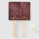 Un élégant ventilateur de programme de mariage formel fait dans un beau look bordeaux brillant damassé, avec des graphismes d'or et de la décoration de coeur rouge, sur le fond. Personnalisez le texte, des deux côtés du ventilateur, pour votre jour de mariage.