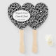 Ce ventilateur de pagaie est montré avec une belle impression damassée noir et blanc avec des noms d'échantillons et la date. Customisez cet objet et changez les noms et la date à votre place.