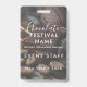Eventpersonal Foto QR-Code Schokoladen Festival Namensschild Vorlage. Ersetzen Sie mit Ihrem Festival- oder Marktnamen, Datum und QR-Code. Verwenden Sie dieses Foto oder ersetzen Sie es durch Ihr eigenes.
