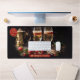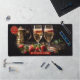 Schreibtischmatte mit festlicher Darstellung von Champagner und Erdbeeren. Sie können die Logo-Vorlage ganz einfach durch Ihre eigene ersetzen oder einfach löschen. Das Hintergrundrechteck unter dem Geschäftstext kann im erweiterten Editor skaliert und angepasst werden. Ideal für einen Eventplaner oder Caterer.