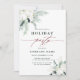 Dieses Weihnachtsfest | Holiday party Einladung mit handgemalten Wintergärten, Blume aus Baumwolle mit goldenen und wasserfarbenen Texturen und einem immergrünen Zweig auf der Rückseite. Klicken Sie auf die SCHALTFLÄCHE BLAUE DESIGN TOOL, um eine erweiterte Anpassung dieses Designs zu erhalten. Matching-Elemente sind ebenfalls verfügbar.