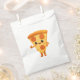 Pizzaschnitt im Stil eines Cartoon mit Daumen.