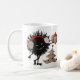 Individuell anpassbare lustige böse Weihnachtszeit-Tasse mit einer dunkeltexturierten Illustration mit einem bösen schwarzen Bug, der ein Weihnachtsgeschenk mit rotem Band hält. Sogar in seinem Übel ist es so freundlich, Geschenke zu geben. Neben dem bösen Charakter gibt es einen Weihnachtsbaum mit roten Weihnachtsbällen und einem roten Stern. Diese böse Charakter-Tasse wird ein großartiges Weihnachtsgeschenk für jemanden machen, der gotischen Stil und lustige Cartoon-Figuren Lieben.