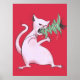 Das sonnige Weihnachtsposter mit einer unglaublich witzig digitalen Illustration einer bösen weißen Katze, die auf lebendigem rotem Hintergrund einen Weihnachtsbaum frisst. Sie wissen, was jedes Single an Weihnachten passiert. Katzen Liebe zu ruinieren Urlaub Dekoration.