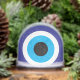 Evil Eye Blue Mati personalisierte Schneeglobe Geschenk. Griechisch / Türkisches Symbol für Glück und Schutz. Fügen Sie Ihren eigenen benutzerdefinierten Text hinzu.
